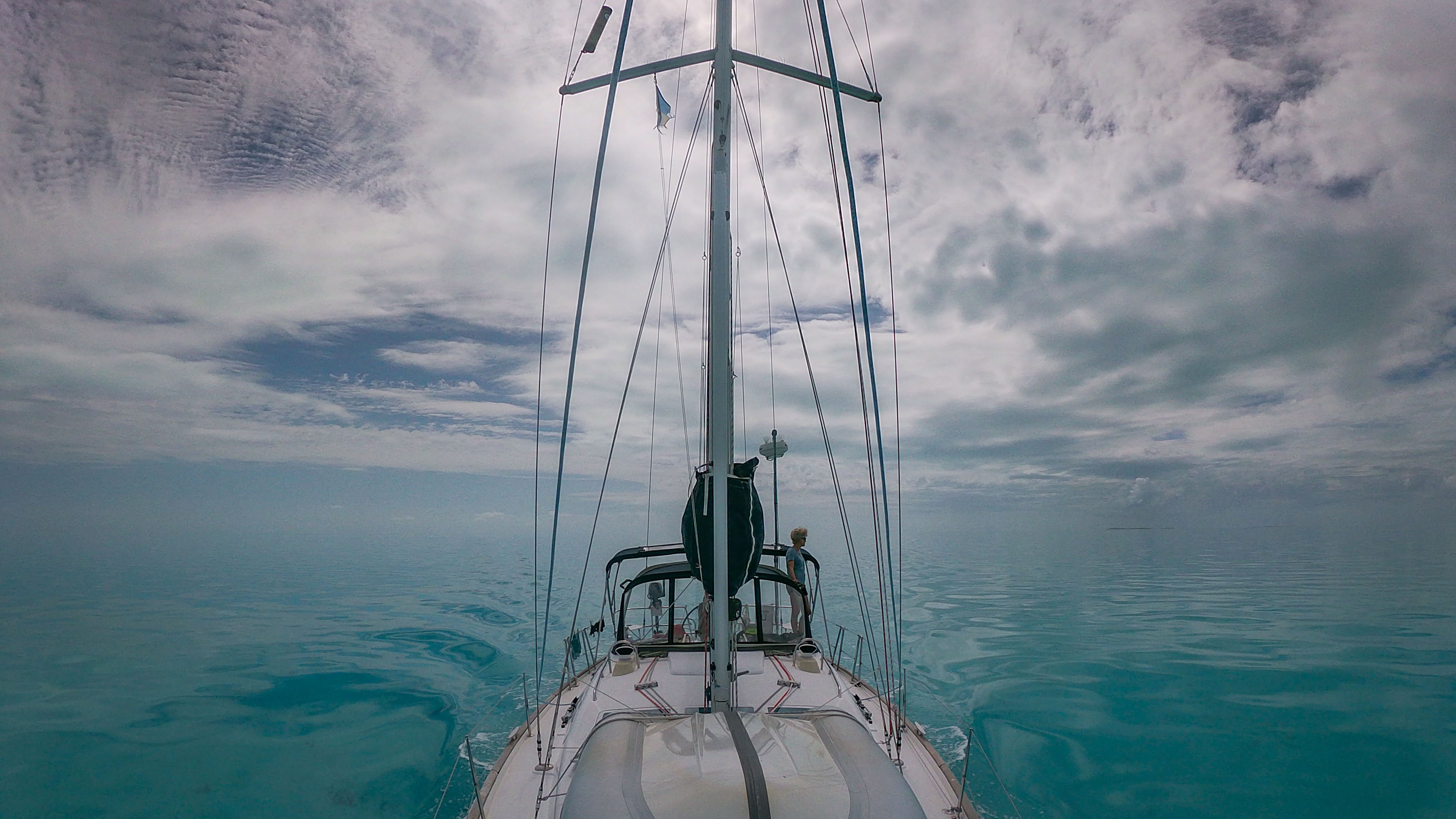 Tuesday at 5AM another squall with lightning came through, so we ran through the drill of putting our valuable electronics in the microwave. After it blew through we managed to sleep for another hour or so. We had planned to set off first thing but there were still squalls in the area so we took the opportunity to finish few a chores. After the skies cleared we set off under power but the NE winds filled in and before long we were sailing! We returned to George Town (Elizabeth) Harbour. With the NE winds forecast to continue to build we went back to an earlier anchorage under the protection of Elizabeth Island, that at least for the time being, we had all to ourselves.